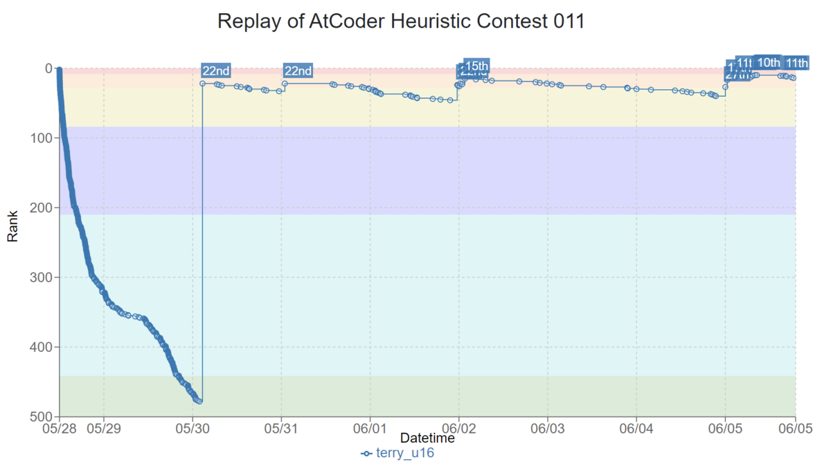 terry_u16さんのAtCoder Heuristic Contest 011での成績:13位